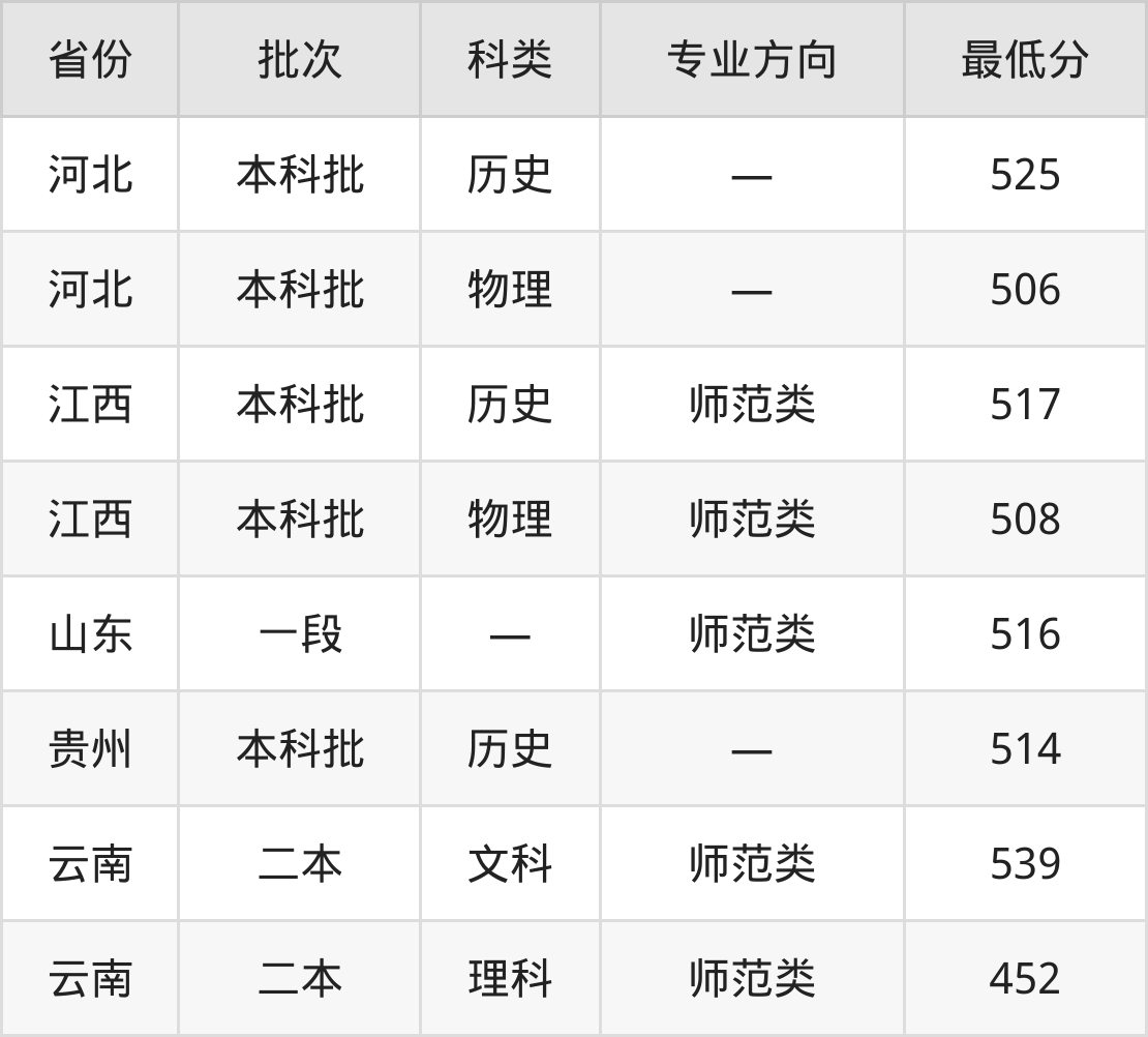 宜春学院地理科学专业录取分数线从452分到539分不等,最低分数线如下: