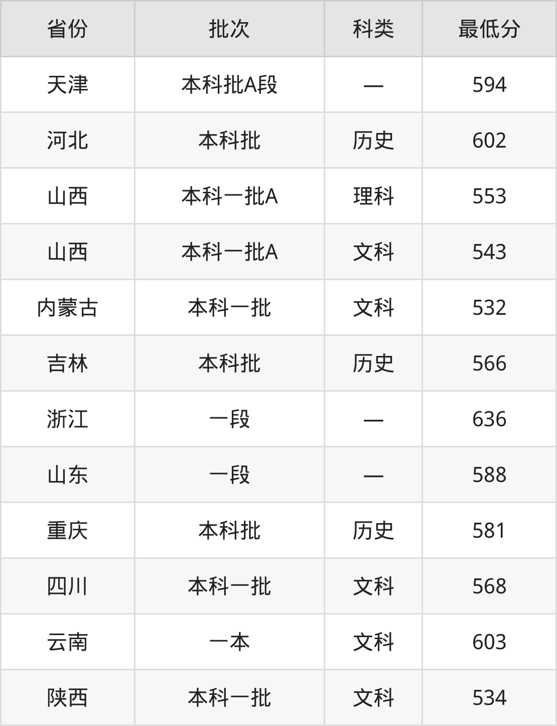 云南:文科最低603分