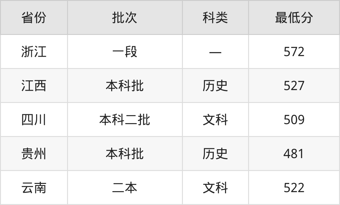 衢州学院旅游管理与服务教育专业在全国各省最低录取分数线为481分(贵州历史类),除此之外,在其余地区的最低分为四川文科509分、云南文科522分、浙江572分、江西历史类527分,以上数据均为2024年数据,供2025年高考生参考。