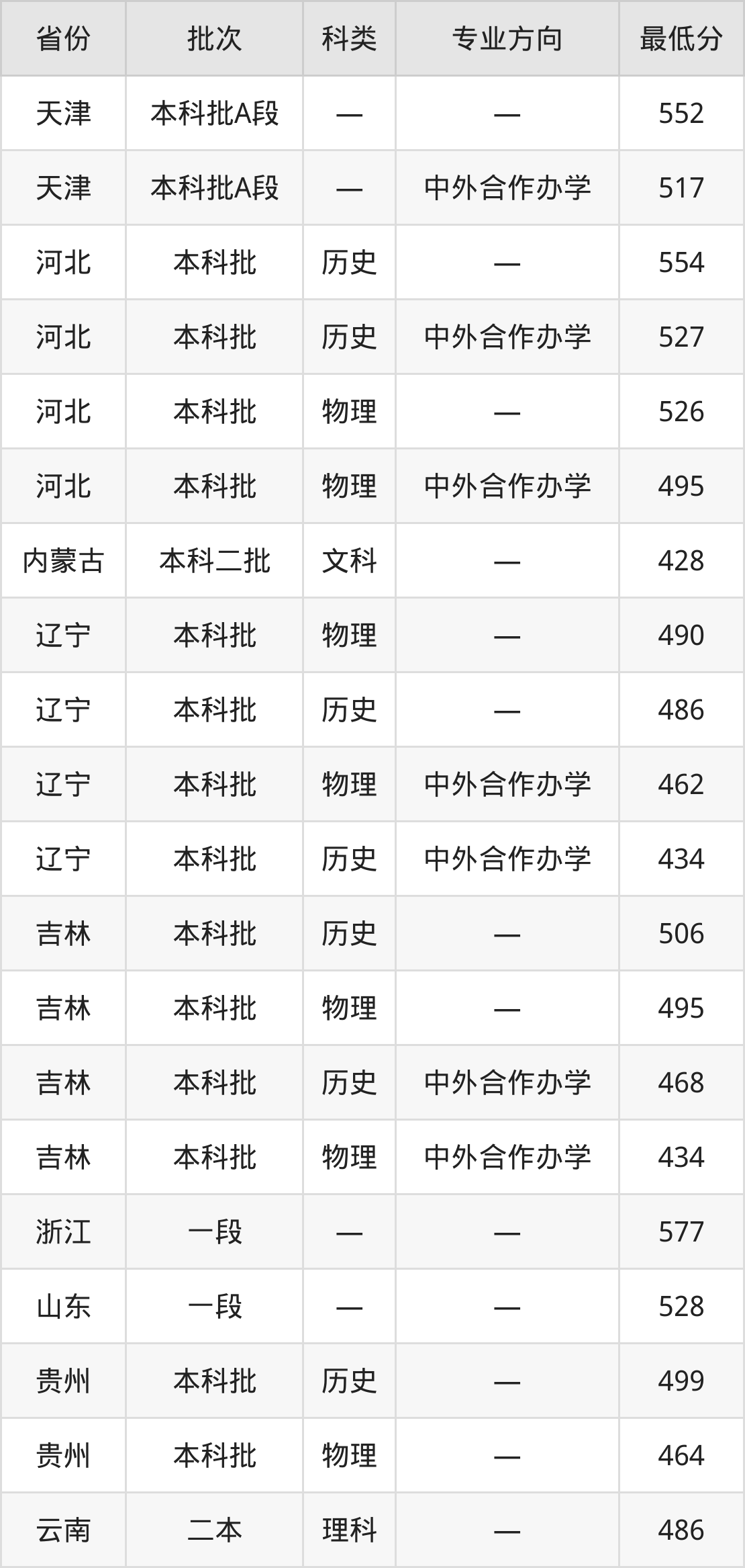 大连大学旅游管理专业录取分数线从428分到577分不等,最低分数线如下: