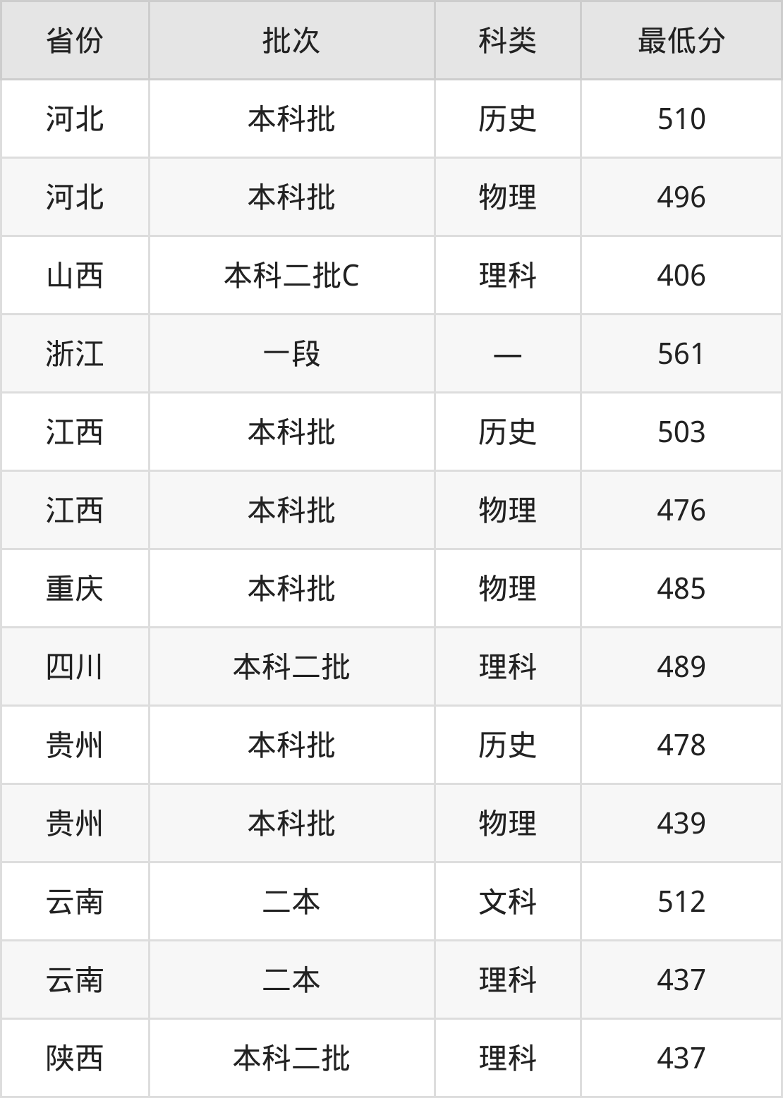 湖北大学知行学院会计学专业在全国各省最低录取分数线为406分(山西理科),除此之外,在其余地区的最低分为贵州物理类439分、陕西理科437分、河北物理类496分、浙江561分等,以上数据均为2024年数据,供2025年高考生参考。