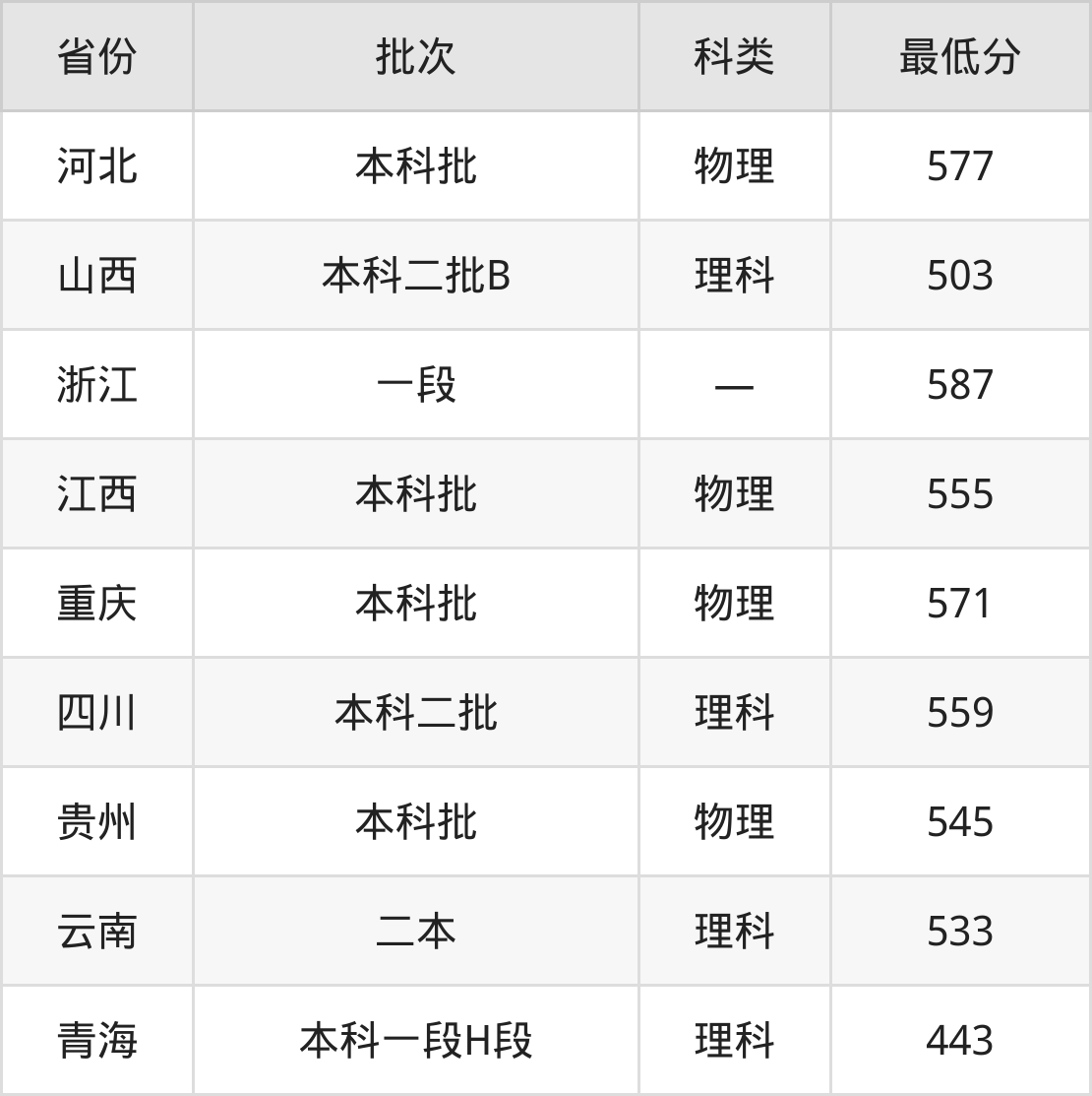 成都大学物联网工程专业在全国各省最低录取分数线为443分(青海理科),除此之外,在其余地区的最低分为江西物理类555分、四川理科559分、云南理科533分、贵州物理类545分等,以上数据均为2024年数据,供2025年高考生参考。