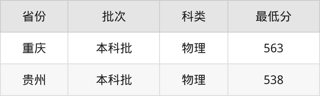广州医科大学康复治疗学专业在全国各省最低录取分数线为538分(贵州物理类),除此之外,在其余地区的最低分为重庆物理类563分,以上数据均为2025年数据,供2026年高考生参考。