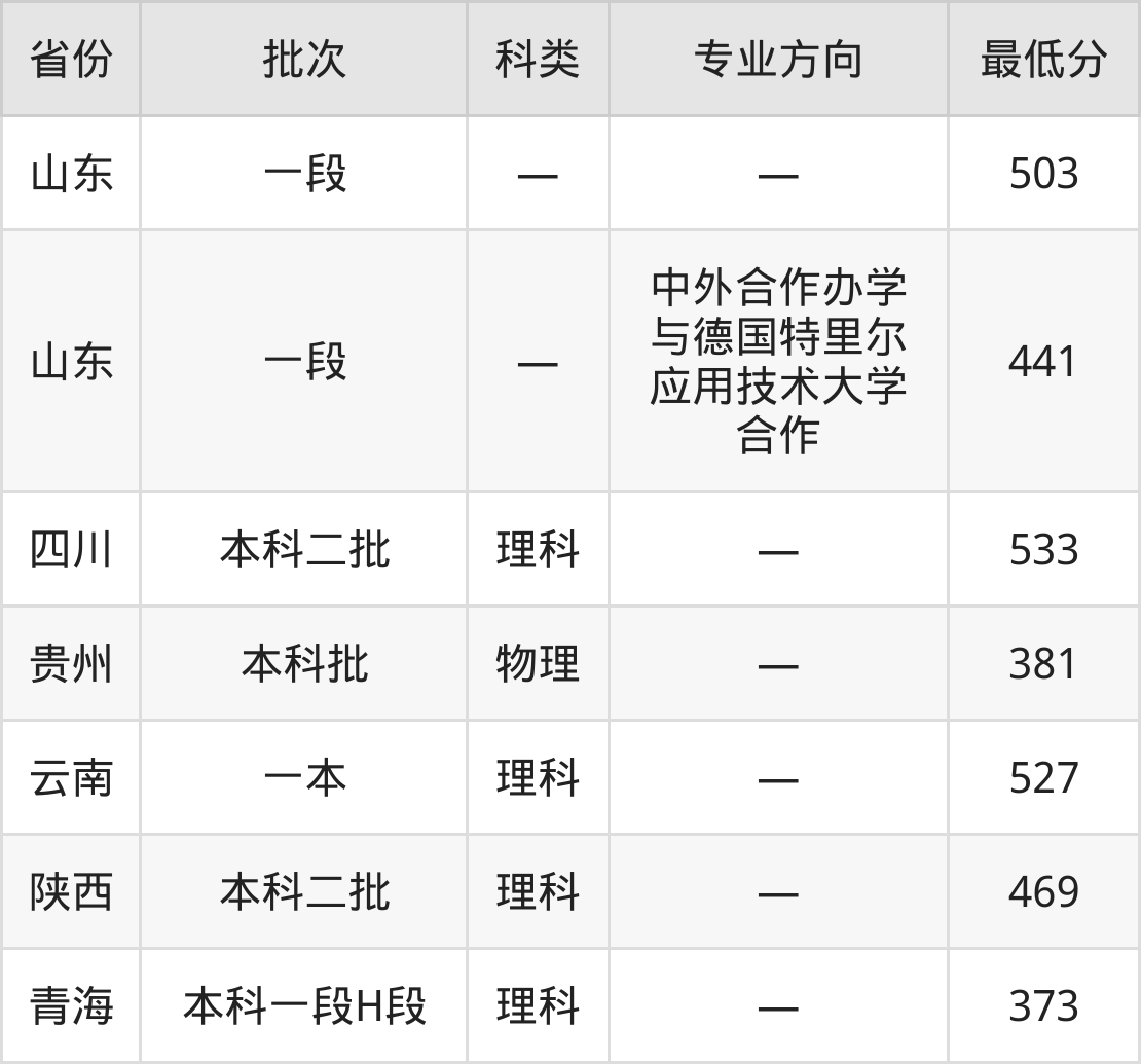烟台大学环保设备工程专业录取分数线从373分到533分不等,最低分数线如下: