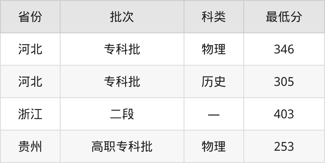 南昌工学院虚拟现实技术应用专业录取分数线从253分到403分不等,最低分数线如下: