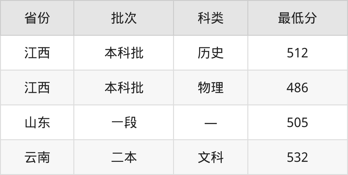 九江学院城乡规划专业录取分数线从486分到532分不等,最低分数线如下: