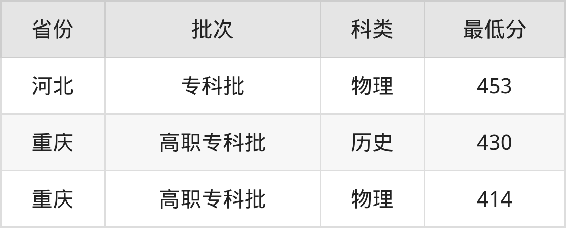 重庆工商职业学院融媒体技术与运营专业在全国各省最低录取分数线为414分(重庆物理类),除此之外,在其余地区的最低分为河北物理类453分,以上数据均为2025年数据,供2026年高考生参考。