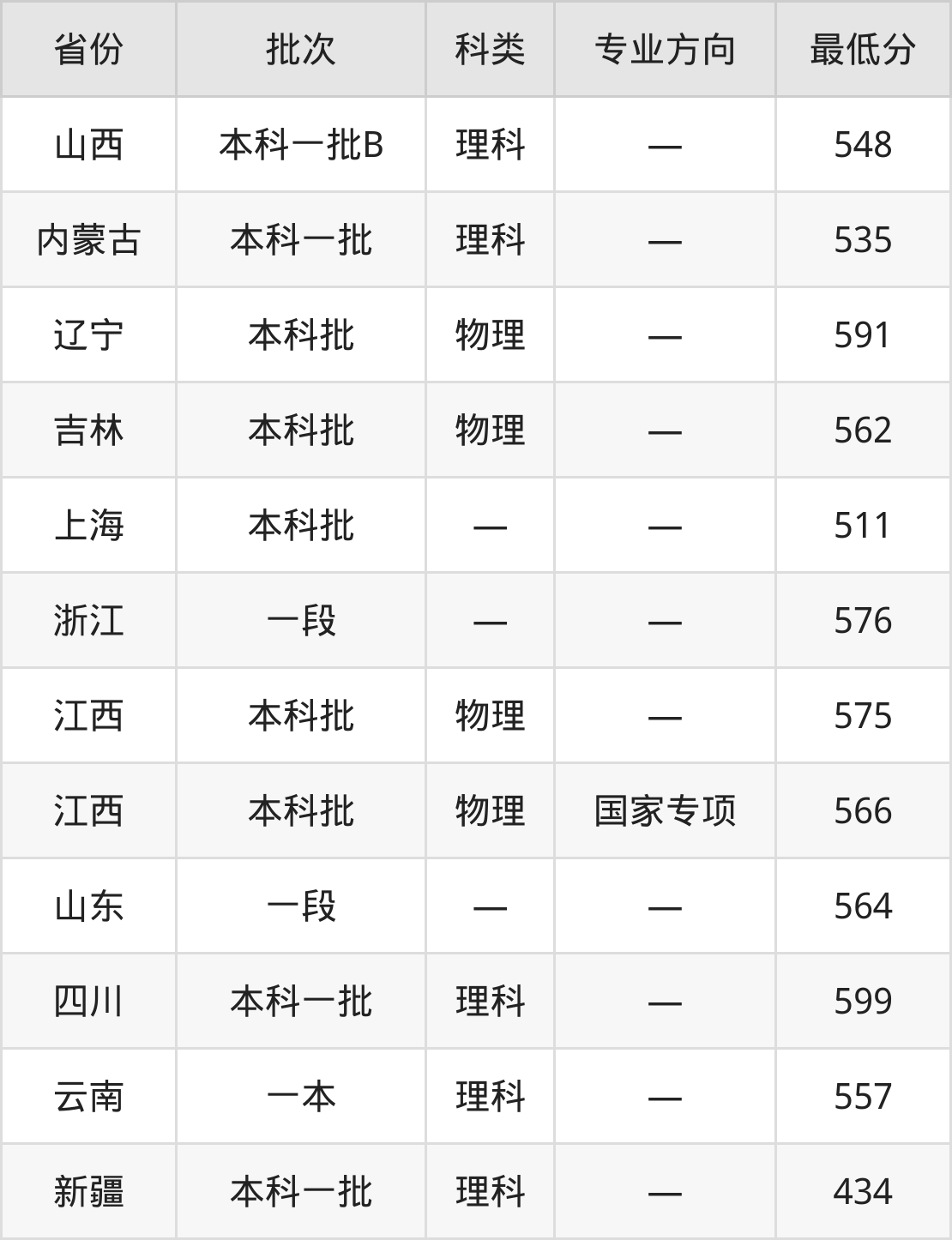 长春理工大学探测制导与控制技术专业录取分数线从434分到599分不等,在部分地区的最低分数线如下: