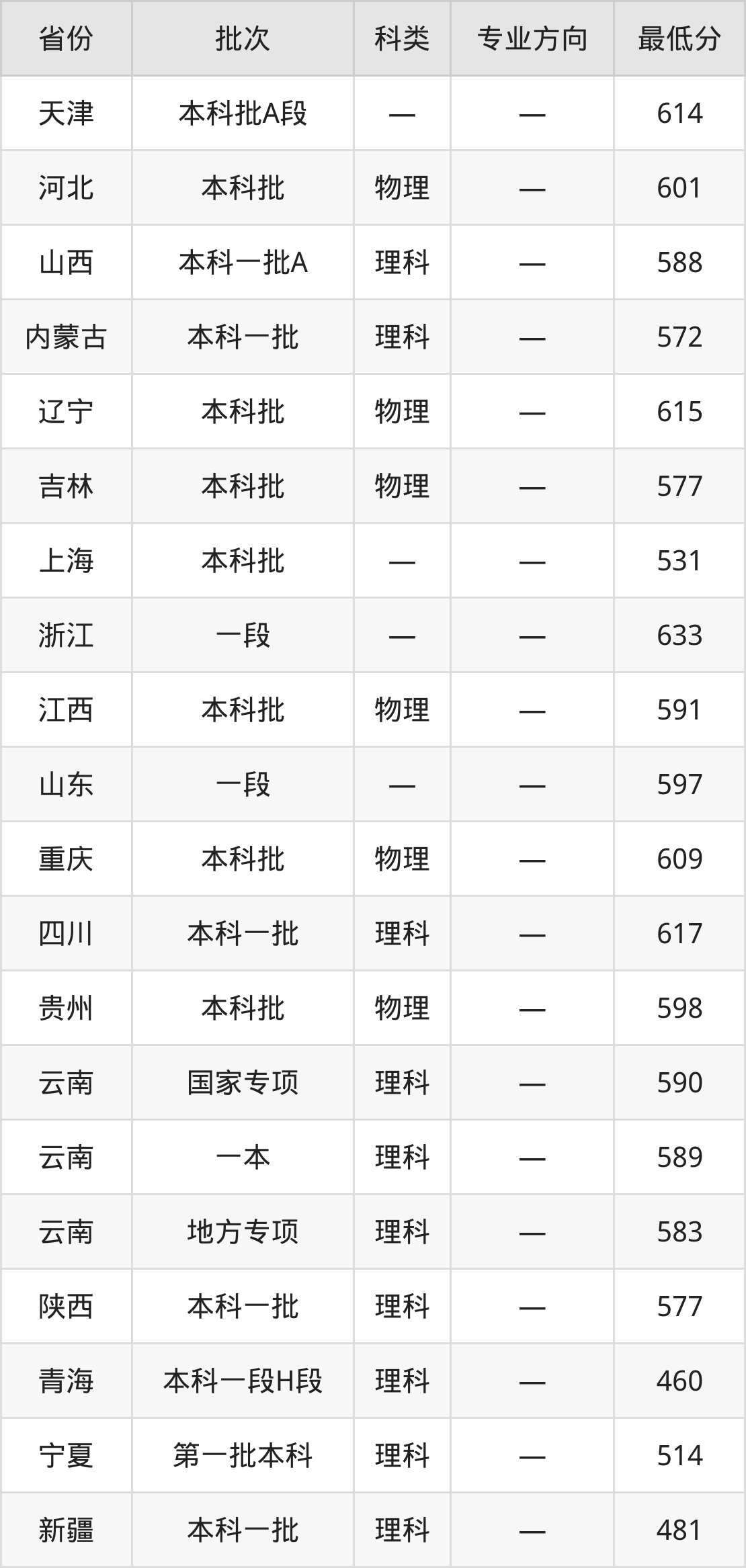 云南大学电子信息类专业录取分数线从460分到633分不等,在部分地区的最低分数线如下: