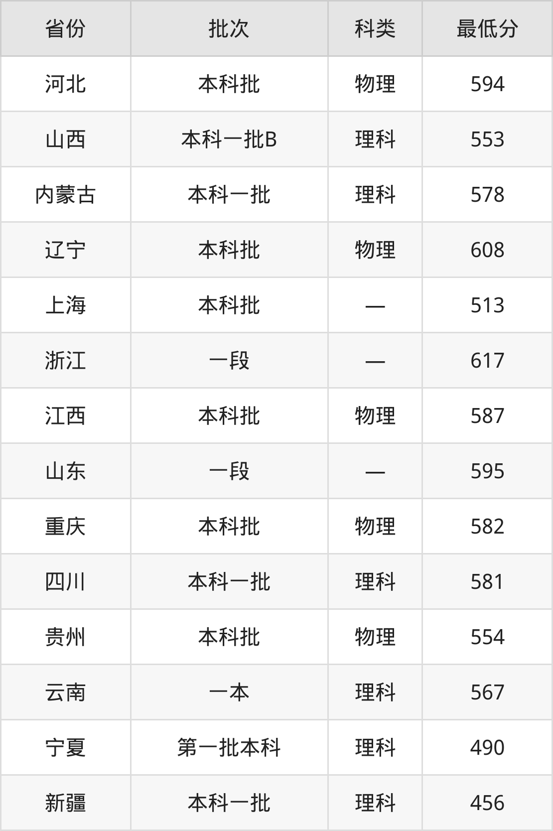 上海海事大学电气工程及其自动化专业录取分数线从456分到617分不等,在部分地区的最低分数线如下: