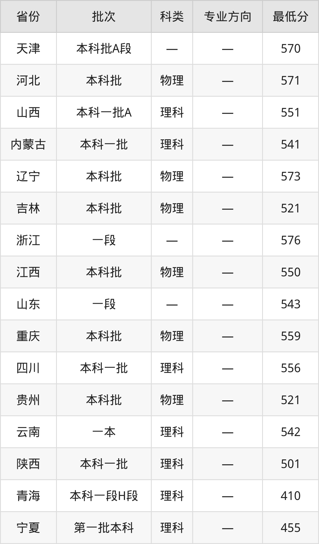 东北石油大学计算机类专业录取分数线从410分到576分不等,在部分地区的最低分数线如下: