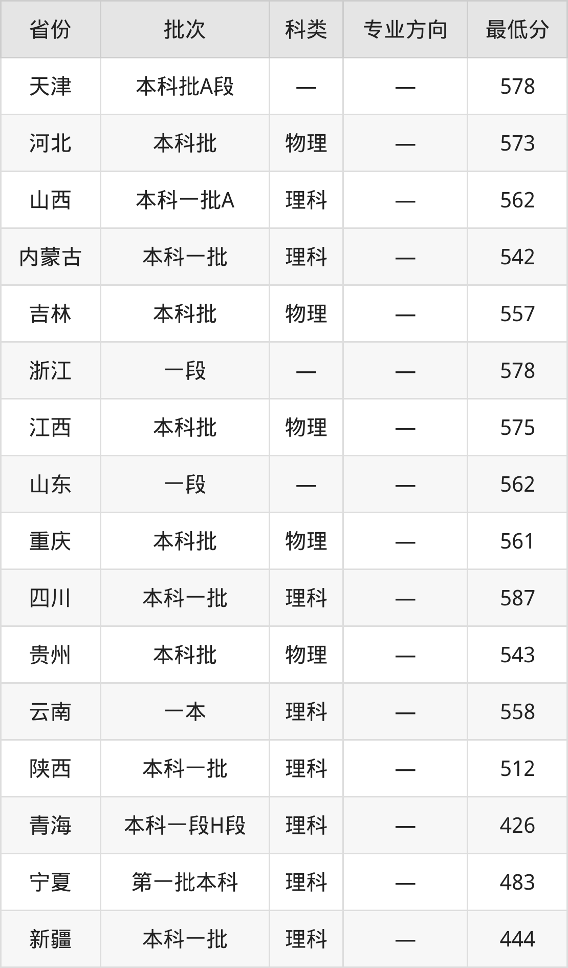 陕西科技大学机械类专业录取分数线从426分到587分不等,在部分地区的最低分数线如下:
