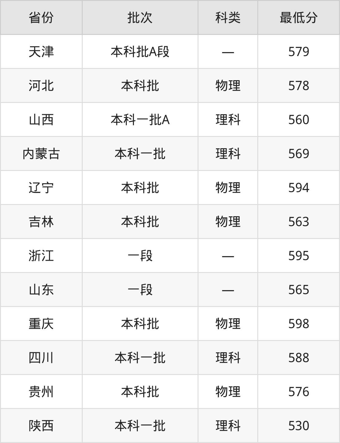 中北大学电气工程及其自动化专业录取分数线从530分到598分不等,在部分地区的最低分数线如下: