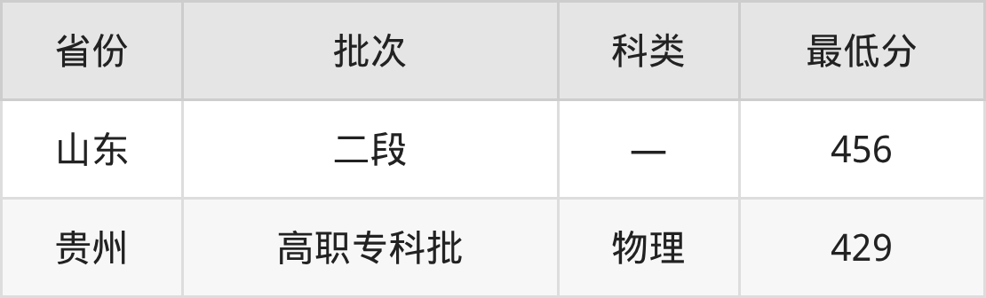 广东轻工职业技术大学汽车智能技术专业在全国各省最低录取分数线为429分(贵州物理类),除此之外,在其余地区的最低分为山东456分,以上数据均为2025年数据,供2026年高考生参考。
