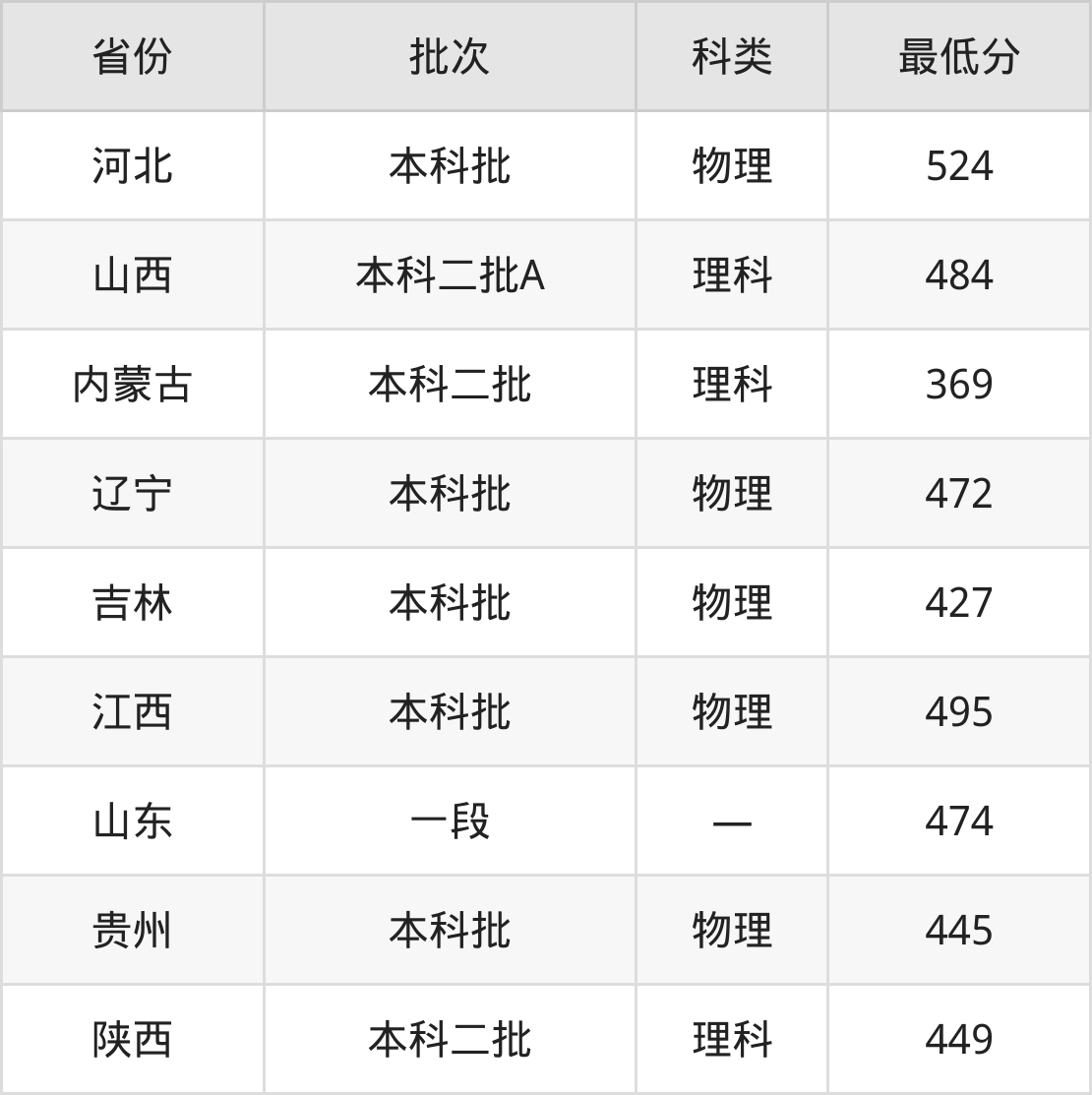 吉林化工学院材料成型及控制工程专业在全国各省最低录取分数线为369分(内蒙古理科),除此之外,在其余地区的最低分为河北物理类524分、辽宁物理类472分、吉林物理类427分、江西物理类495分等,以上数据均为2024年数据,供2025年高考生参考。