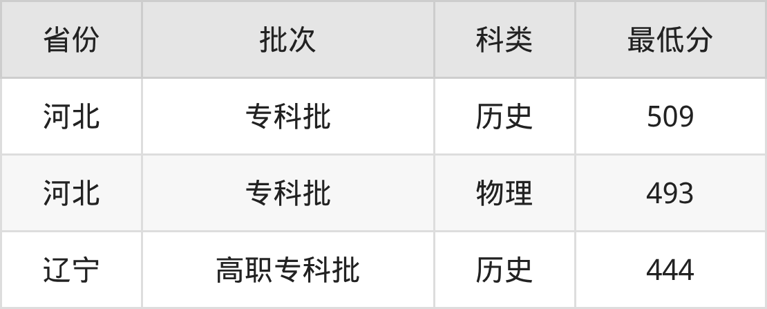 石家庄职业技术学院大数据与会计专业在全国各省最低录取分数线为444分(辽宁历史类),除此之外,在其余地区的最低分为河北物理类493分,以上数据均为2025年数据,供2026年高考生参考。