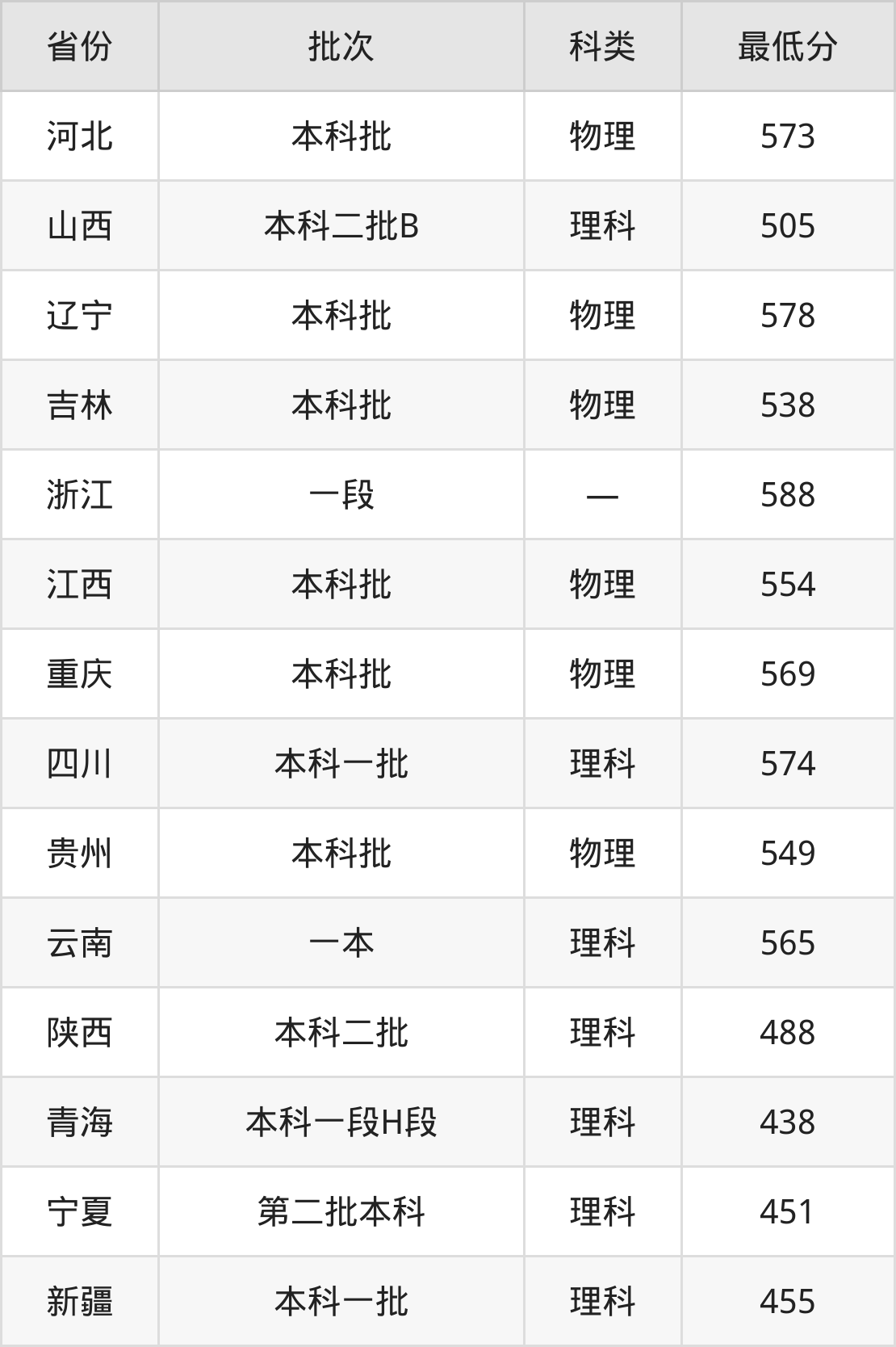 成都大学机械设计制造及其自动化专业录取分数线从438分到588分不等,在部分地区的最低分数线如下: