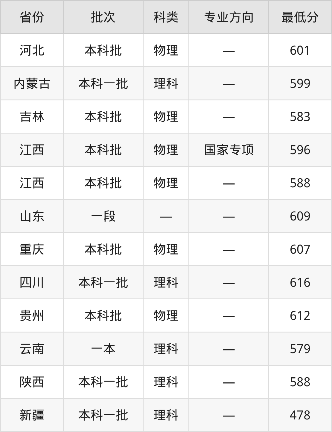 内蒙古:理科最低599分