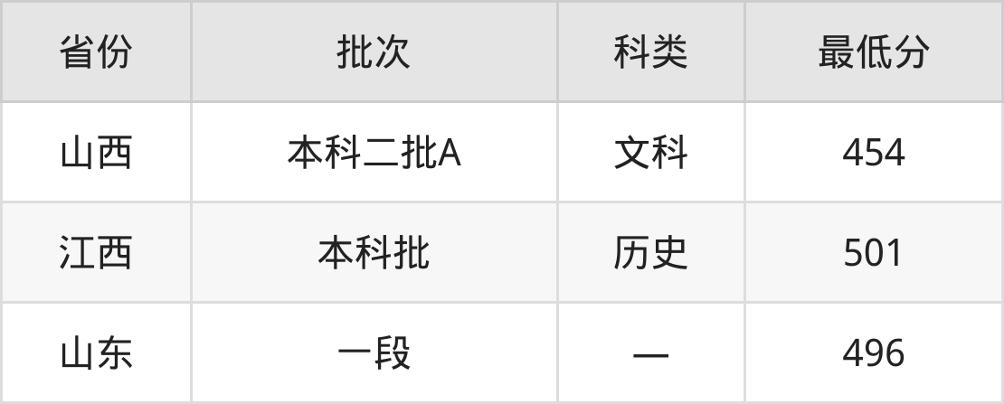山西:文科最低454分