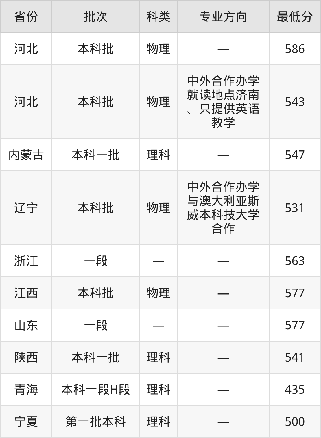 山东科技大学自动化专业录取分数线从435分到586分不等,最低分数线如下: