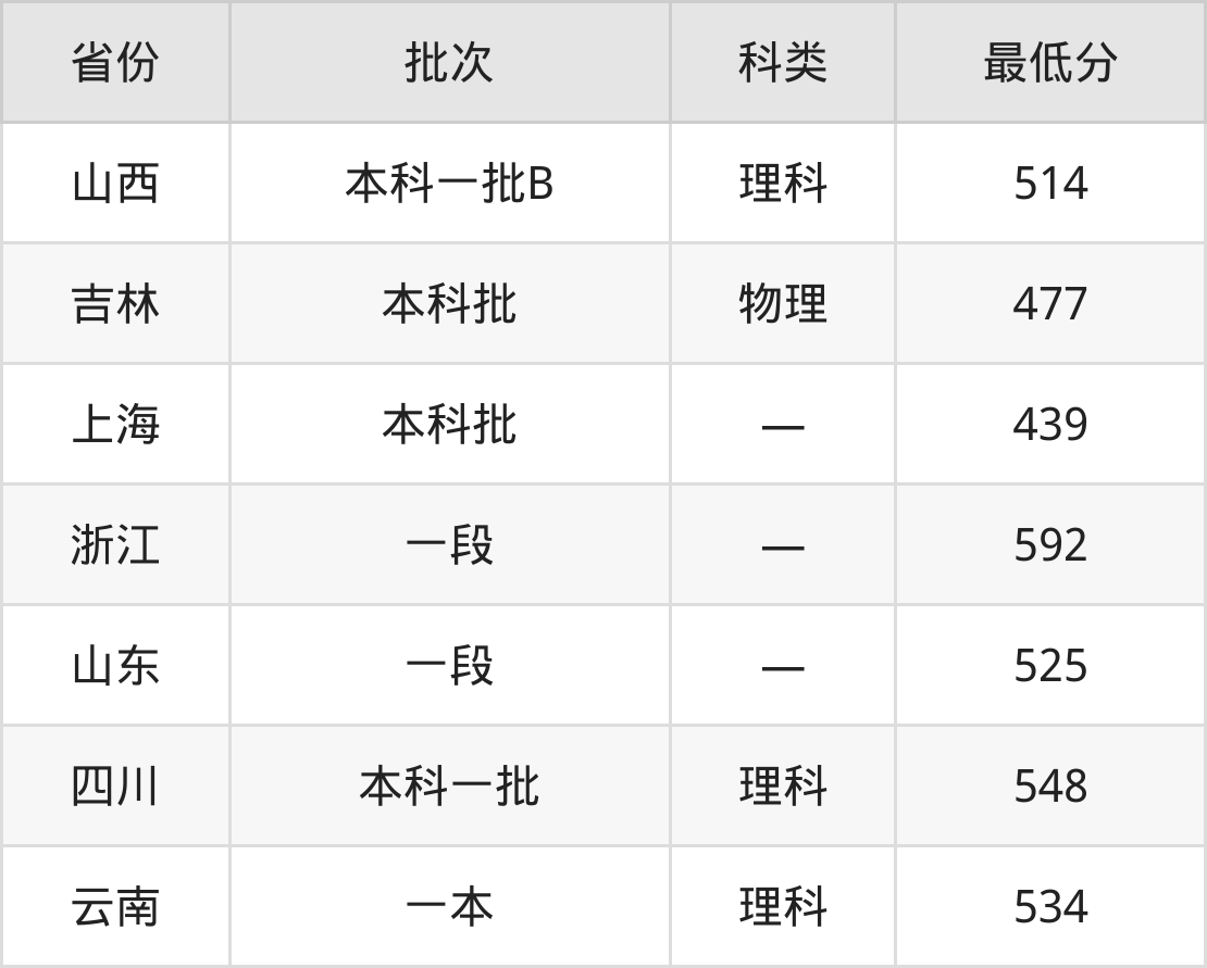 安徽建筑大学建筑学专业在全国各省最低录取分数线为439分(上海),除此之外,在其余地区的最低分为云南理科534分、山西理科514分、吉林物理类477分、浙江592分等,以上数据均为2024年数据,供2025年高考生参考。