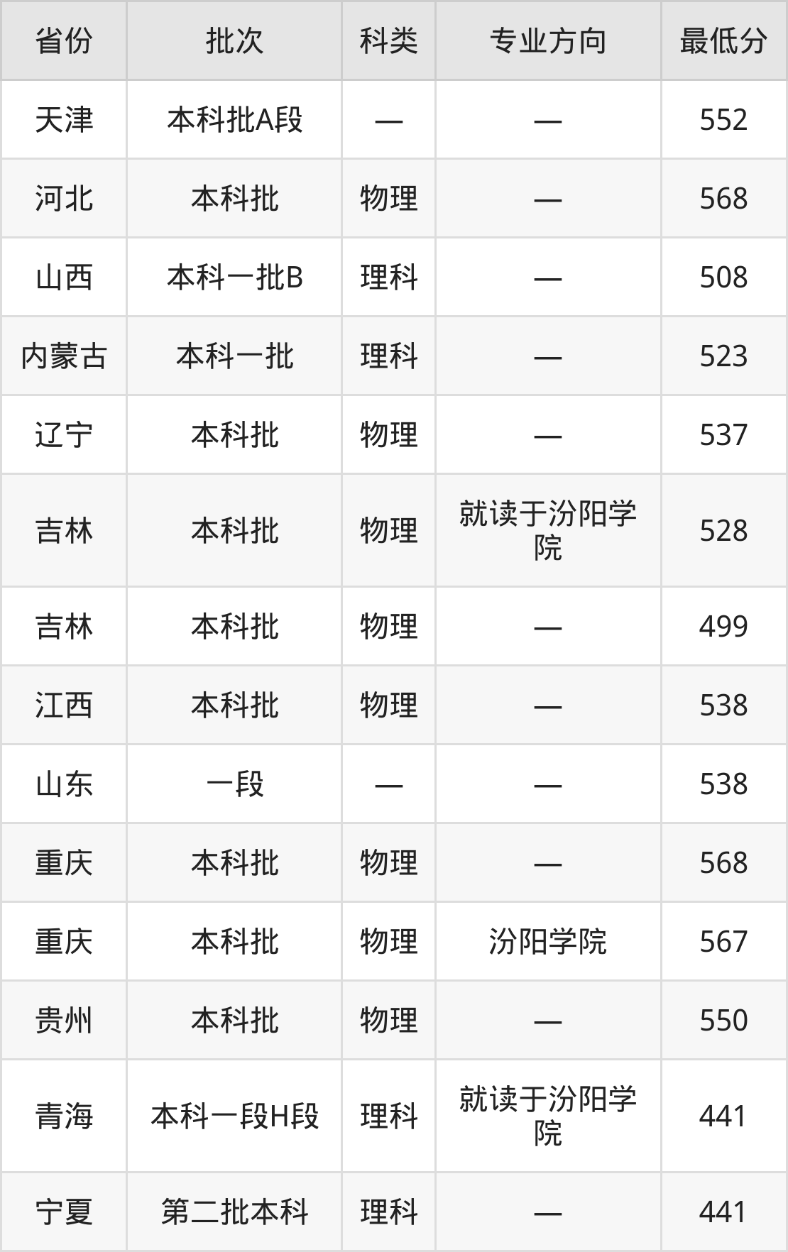 山西医科大学医学影像技术专业录取分数线从441分到568分不等,在部分地区的最低分数线如下: