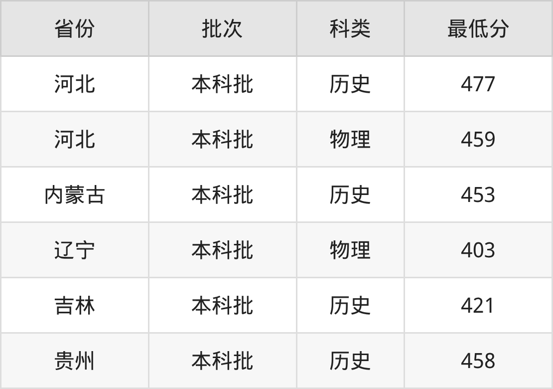 哈尔滨石油学院跨境电子商务专业录取分数线从403分到477分不等,最低分数线如下:
