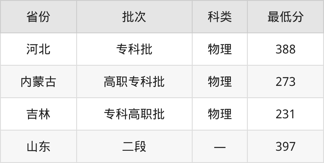 西安信息职业大学机电一体化技术专业在全国各省最低录取分数线为231分(吉林物理类),除此之外,在其余地区的最低分为河北物理类388分、内蒙古物理类273分、山东397分,以上数据均为2025年数据,供2026年高考生参考。