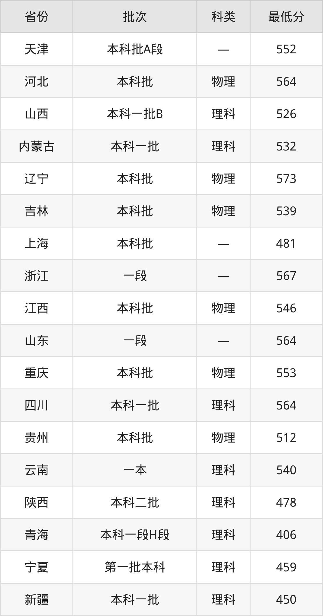 内蒙古:理科最低532分