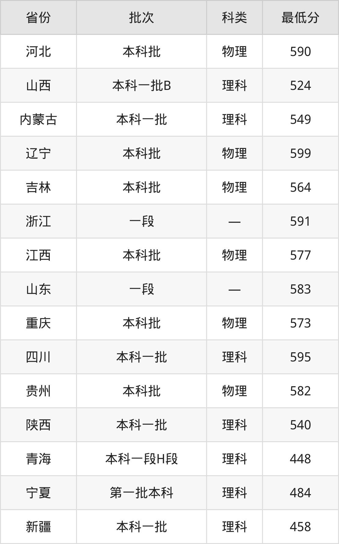 重庆交通大学计算机科学与技术专业录取分数线从448分到599分不等,在部分地区的最低分数线如下: