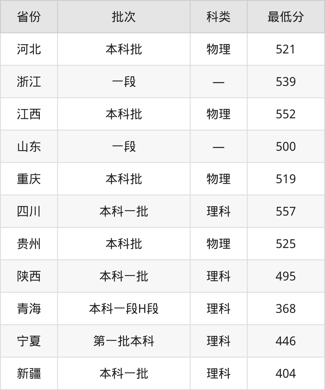 浙江:最低539分