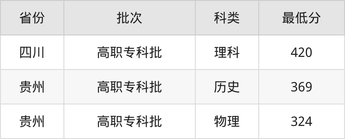 贵州电子信息职业技术学院发电厂及电力系统专业在全国各省最低录取分数线为324分(贵州物理类),除此之外,在其余地区的最低分为四川理科420分,以上数据均为2024年数据,供2025年高考生参考。