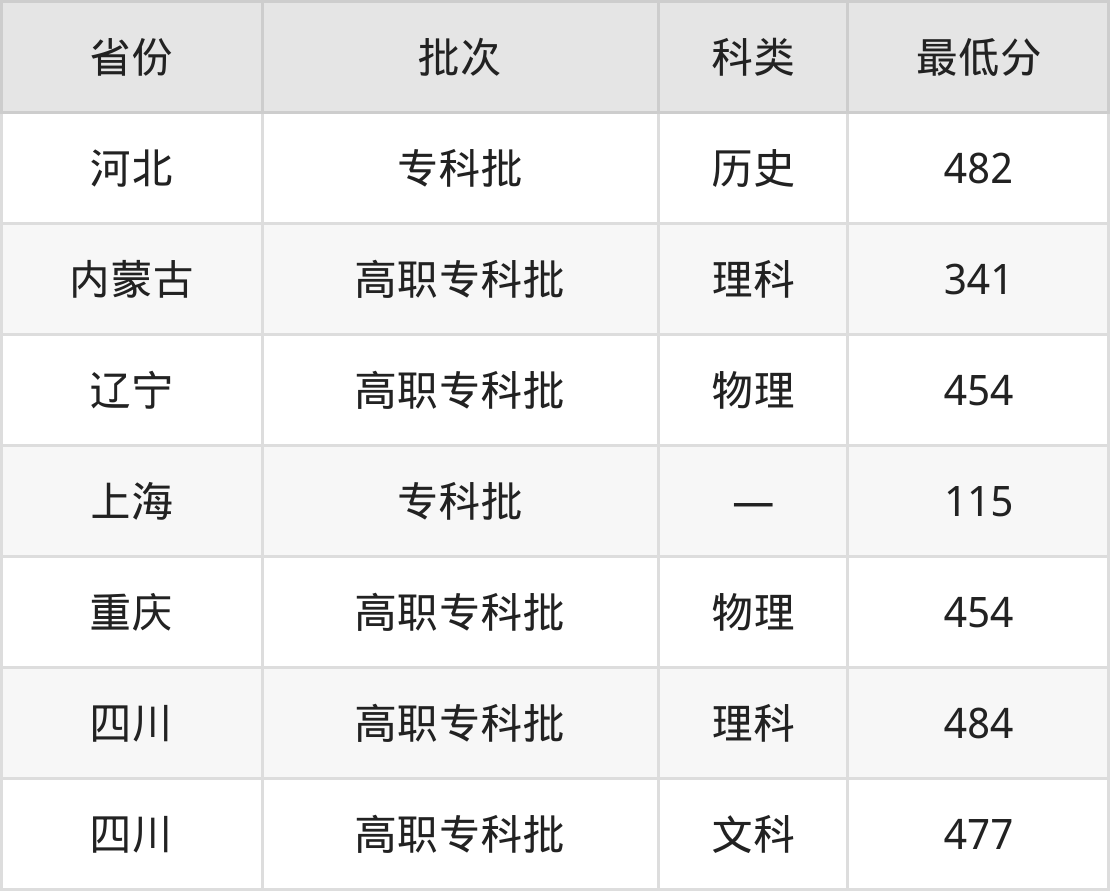 四川工程职业技术大学新能源汽车技术专业录取分数线从115分到484分不等,最低分数线如下:
