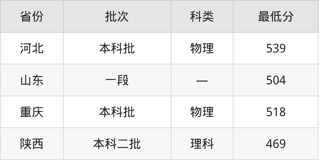 山东航空学院电气工程及其自动化专业录取分数线从469分到539分不等,最低分数线如下: