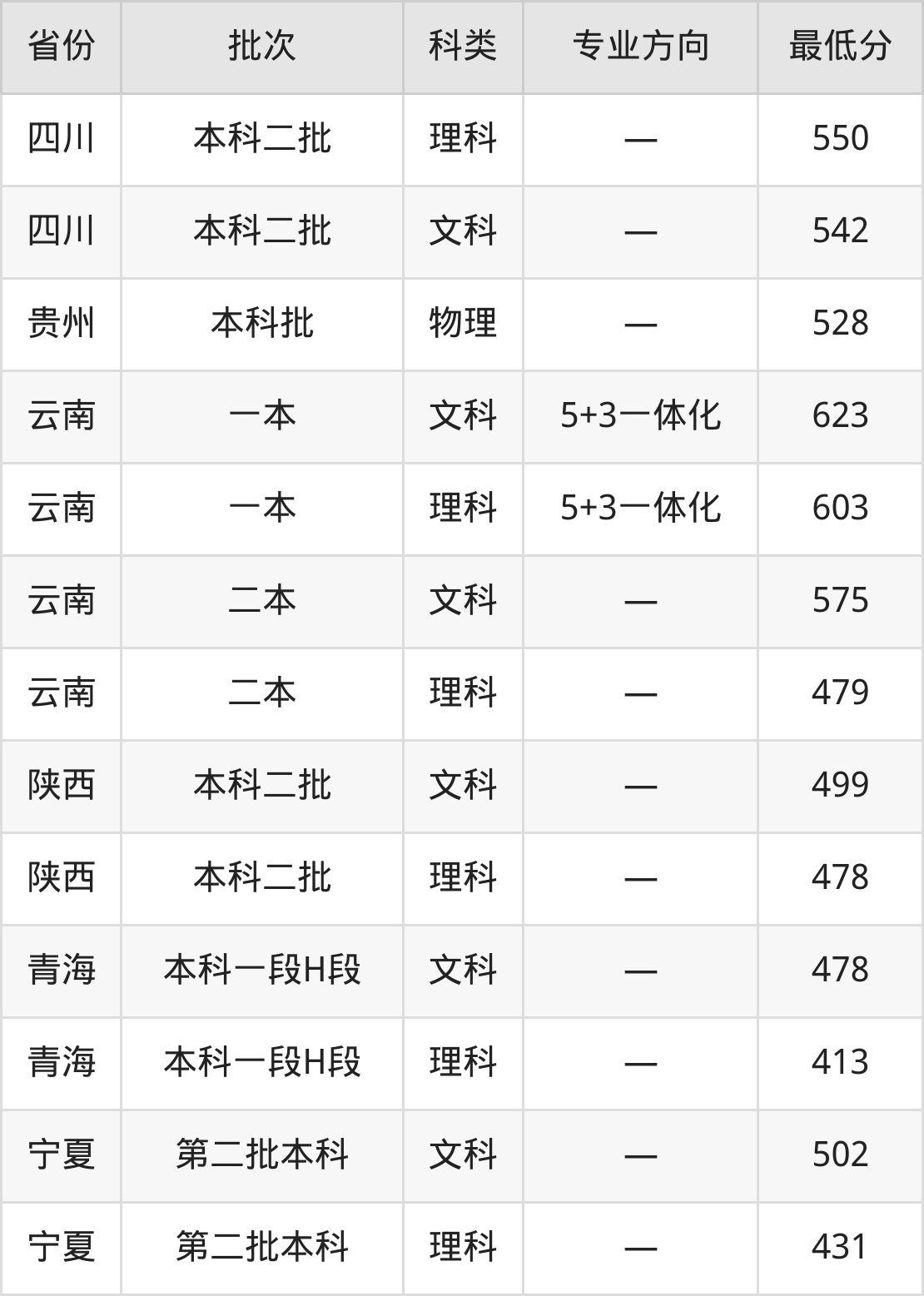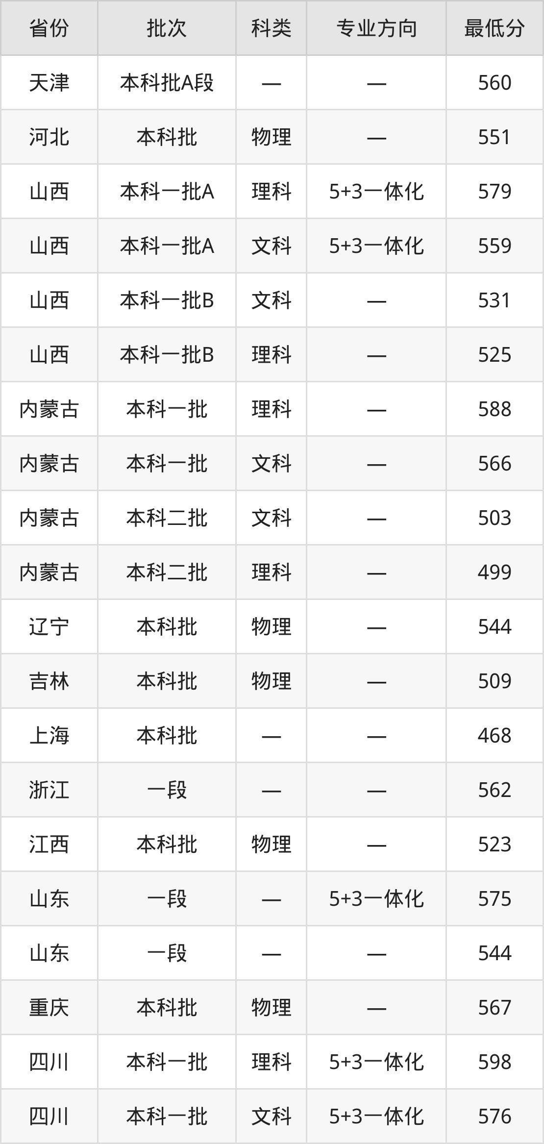 山西中医药大学中医学专业录取分数线从413分到623分不等,在部分地区的最低分数线如下: