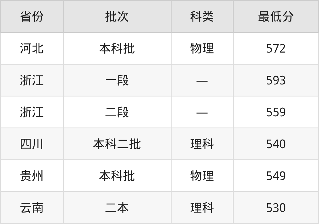 杭州医学院口腔医学专业在全国各省最低录取分数线为530分(云南理科),除此之外,在其余地区的最低分为贵州物理类549分、河北物理类572分、浙江559分、四川理科540分,以上数据均为2024年数据,供2025年高考生参考。