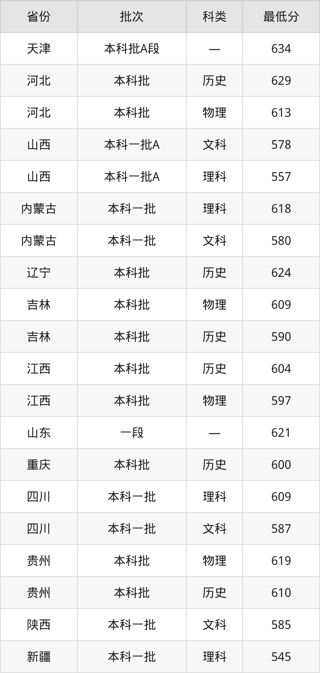 北京交通大学法学专业在全国各省最低录取分数线为525分(新疆文科),除此之外,在其余地区的最低分为山东621分、贵州历史类610分、天津634分、山西理科557分等,以上数据均为2024年数据,供2025年高考生参考。