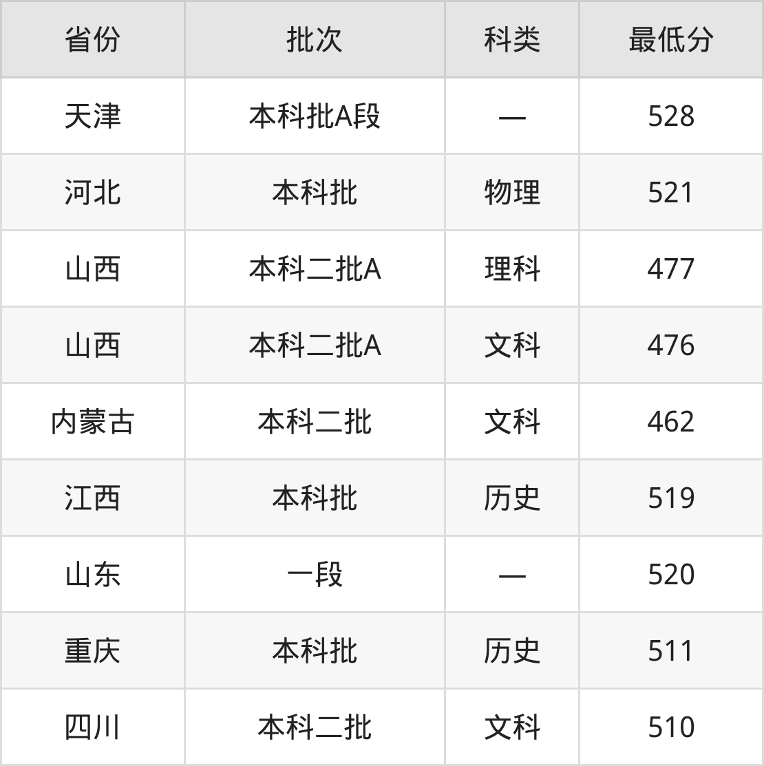 忻州师范学院审计学专业录取分数线从462分到528分不等,最低分数线如下:
