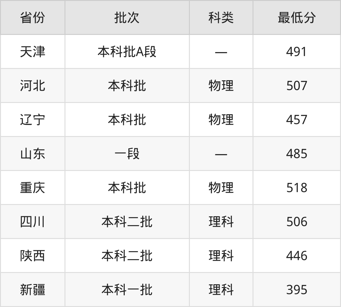 新疆师范大学化学工程与工艺专业录取分数线从395分到518分不等,最低分数线如下: