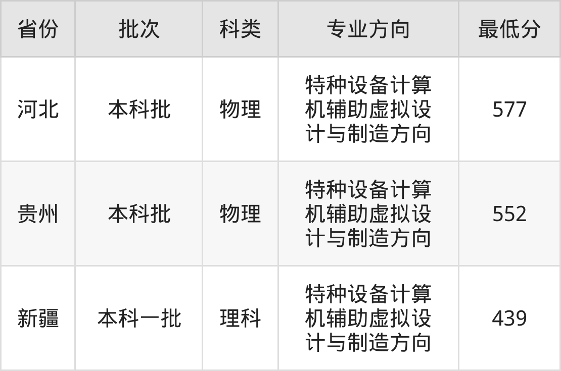 武汉工程大学机械工程专业录取分数线从439分到577分不等,最低分数线如下: