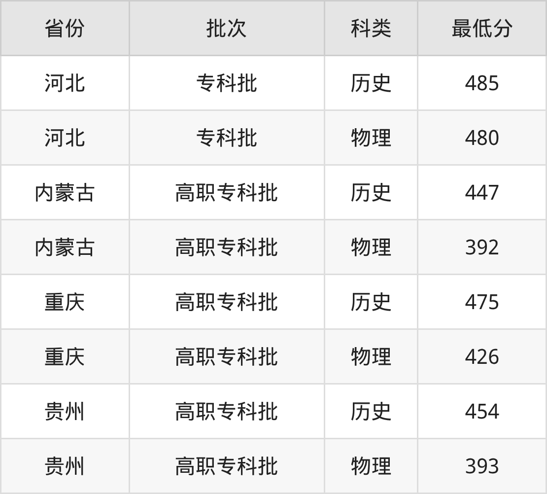 运城护理职业学院口腔医学专业在全国各省最低录取分数线为392分(内蒙古物理类),除此之外,在其余地区的最低分为河北物理类480分、重庆物理类426分、贵州物理类393分,以上数据均为2025年数据,供2026年高考生参考。