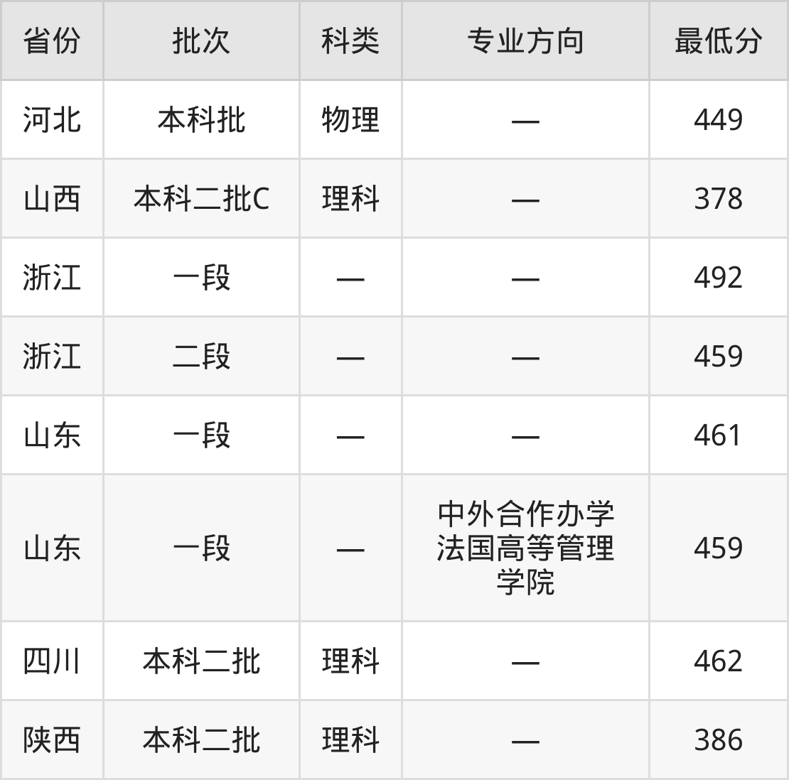 阳光学院电子商务专业在全国各省最低录取分数线为378分(山西理科),除此之外,在其余地区的最低分为陕西理科386分、河北物理类449分、浙江459分、山东459分等,以上数据均为2024年数据,供2025年高考生参考。