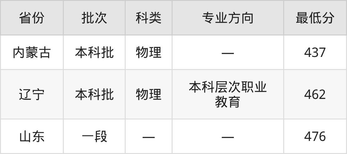 兰州资源环境职业技术大学安全工程技术专业在全国各省最低录取分数线为437分(内蒙古物理类),除此之外,在其余地区的最低分为山东476分、辽宁物理类462分,以上数据均为2025年数据,供2026年高考生参考。