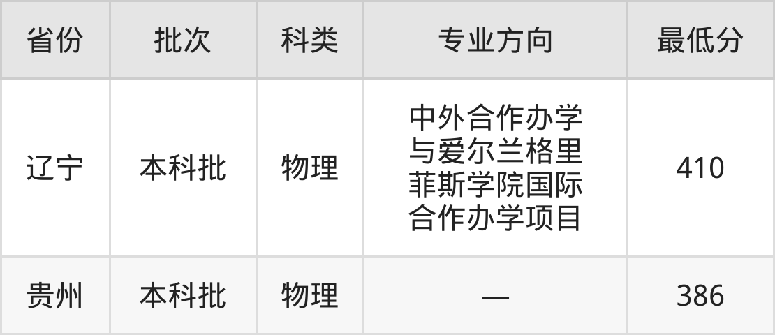| 物理类 | 208组(中 外合作) | 中外合作办学 与爱尔兰格里 菲斯学院中外 合作办学项目 | 37 |