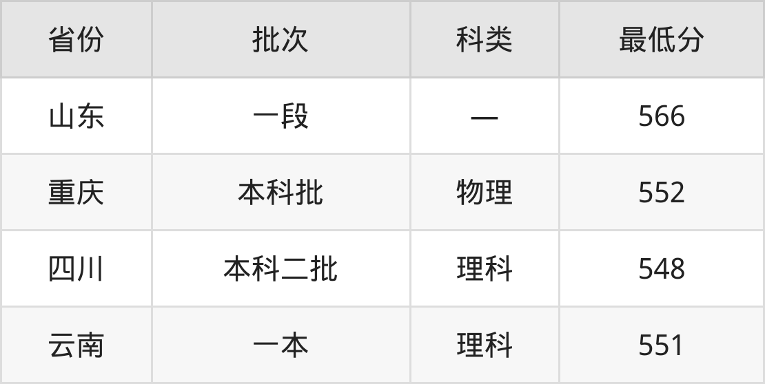 重庆师范大学计算机科学与技术专业录取分数线从548分到566分不等,最低分数线如下: