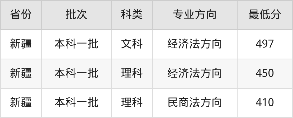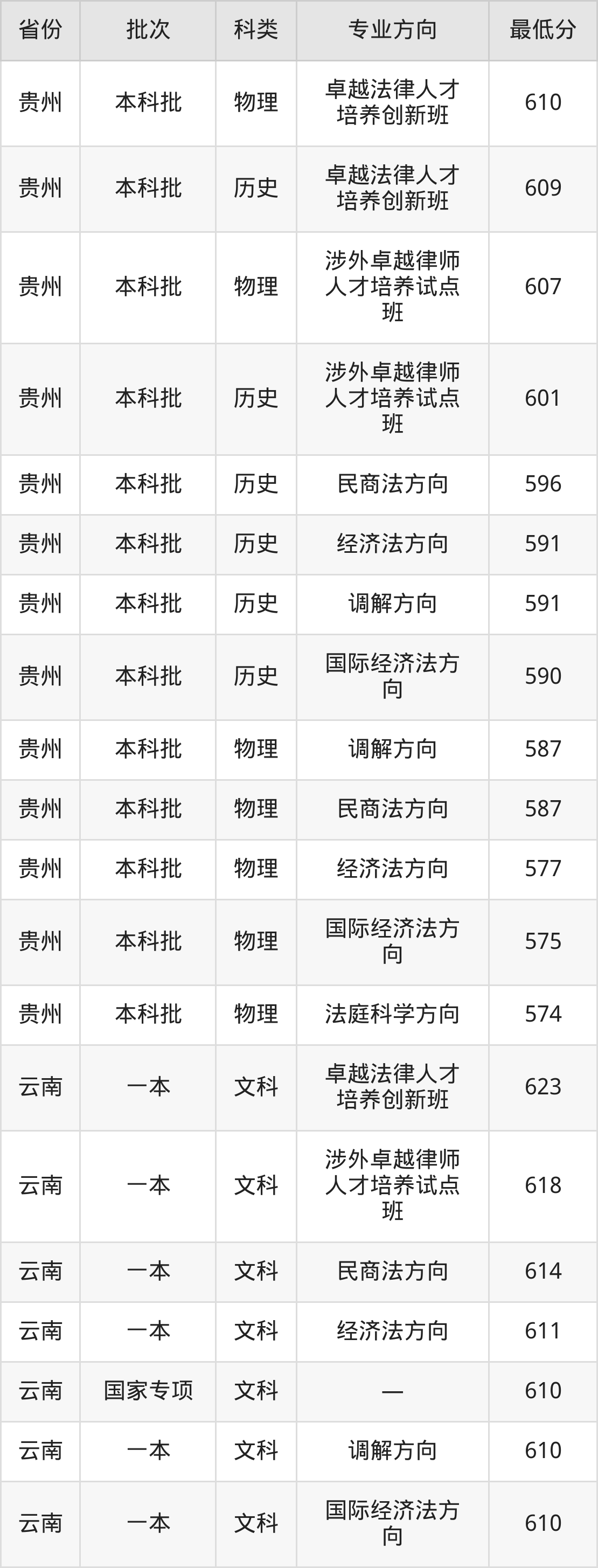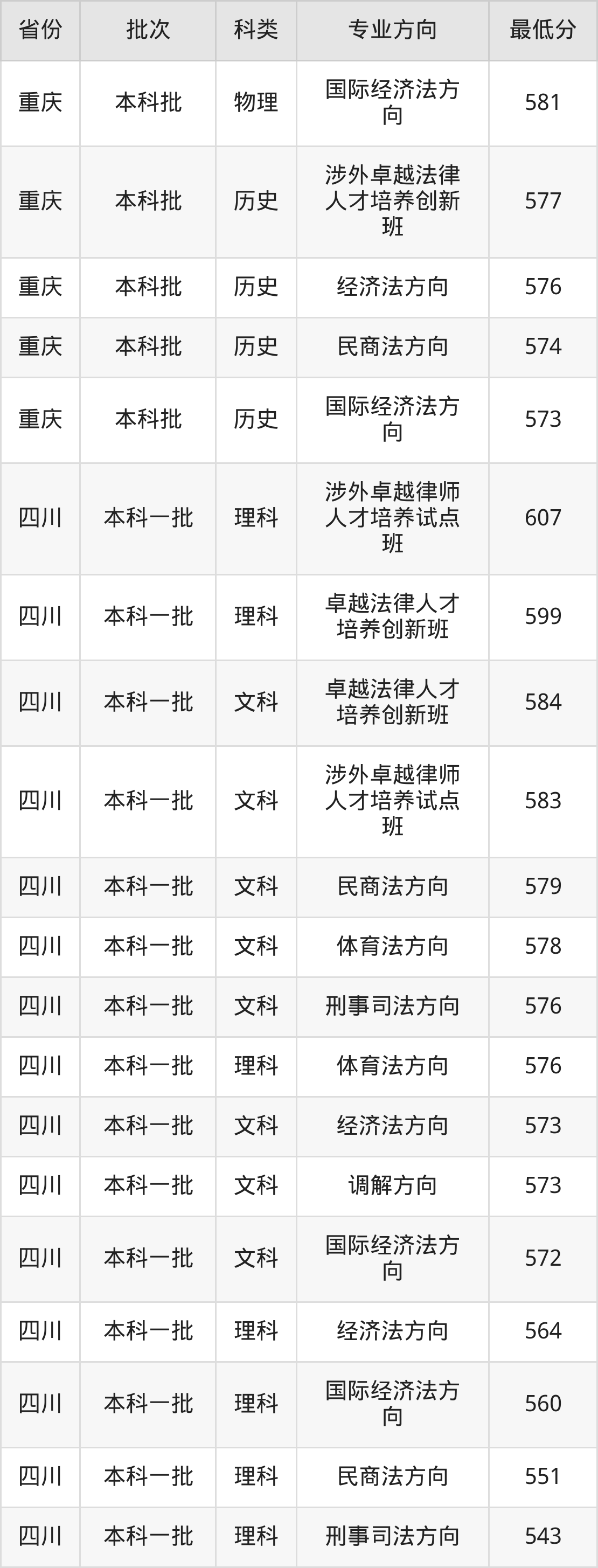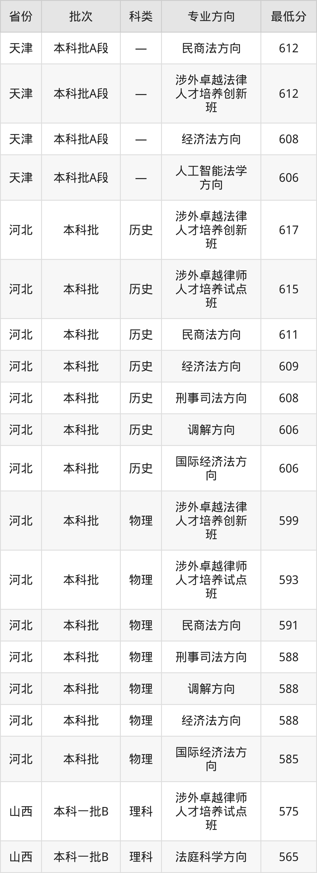 上海政法学院法学专业录取分数线从410分到652分不等,在部分地区的最低分数线如下: