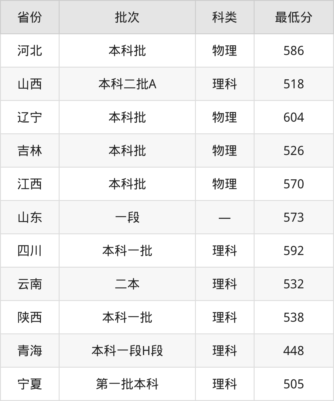 山西:理科最低518分