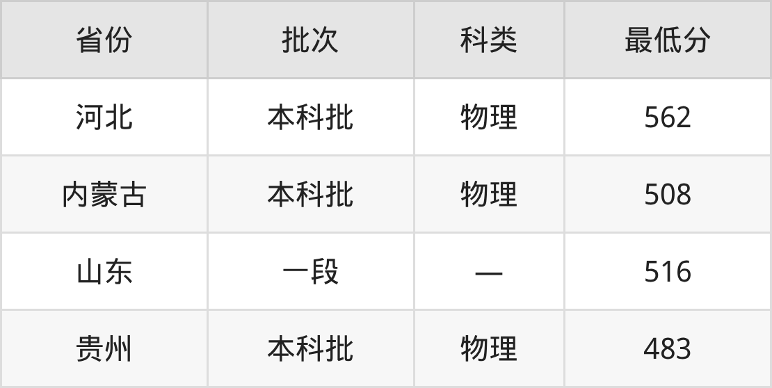 辽宁石油化工大学测控技术与仪器专业在全国各省最低录取分数线为483分(贵州物理类),除此之外,在其余地区的最低分为河北物理类562分、内蒙古物理类508分、山东516分,以上数据均为2025年数据,供2026年高考生参考。