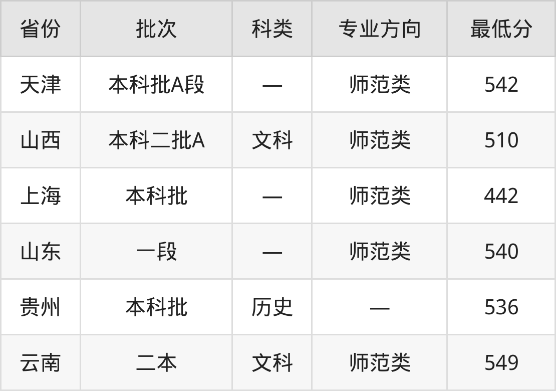 岭南师范学院汉语言文学专业在全国各省最低录取分数线为442分(上海),除此之外,在其余地区的最低分为云南文科549分、天津542分、山西文科510分、山东540分等,以上数据均为2024年数据,供2025年高考生参考。
