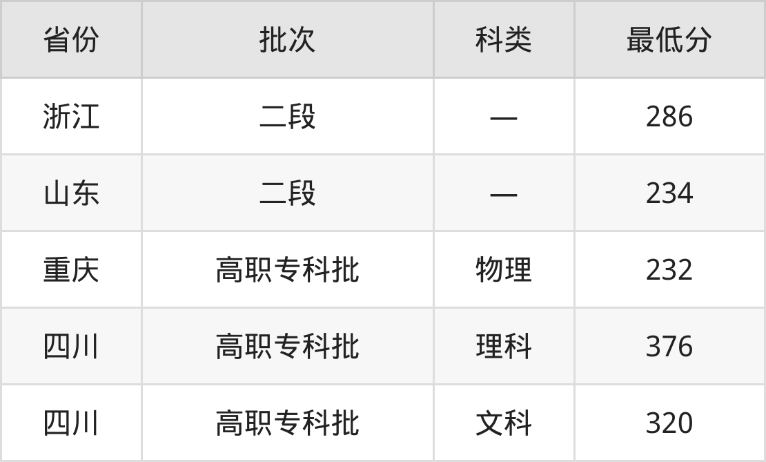 四川托普信息技术职业学院人工智能技术应用专业录取分数线从232分到376分不等,最低分数线如下: